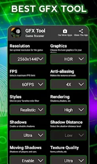 Com este aplicativo, você pode tornar os gráficos do seu jogo melhores, mais rápidos e mais eficientes. Possui todas as ferramentas necessárias para criar os melhores gráficos e o melhor desempenho.